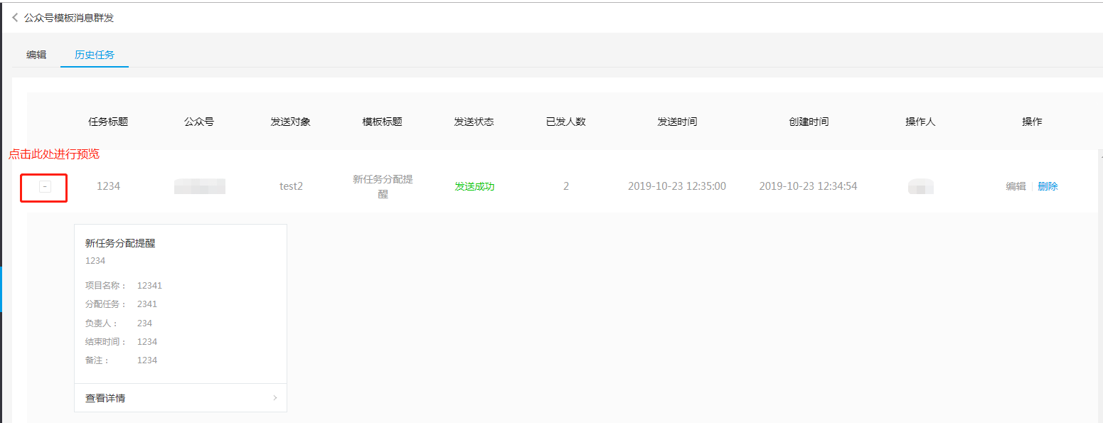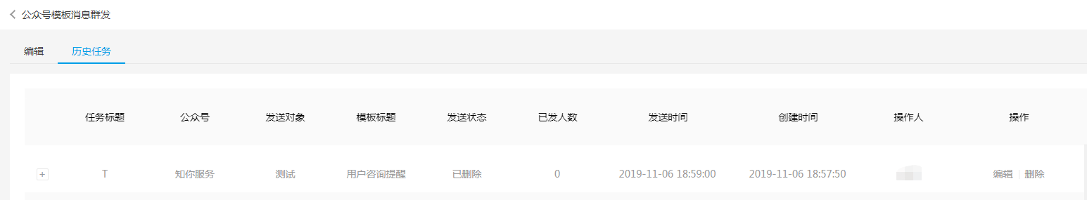 点击删除,未发送的模版消息任务项会被删除,任务不会再发送,任务会标记为已删除;